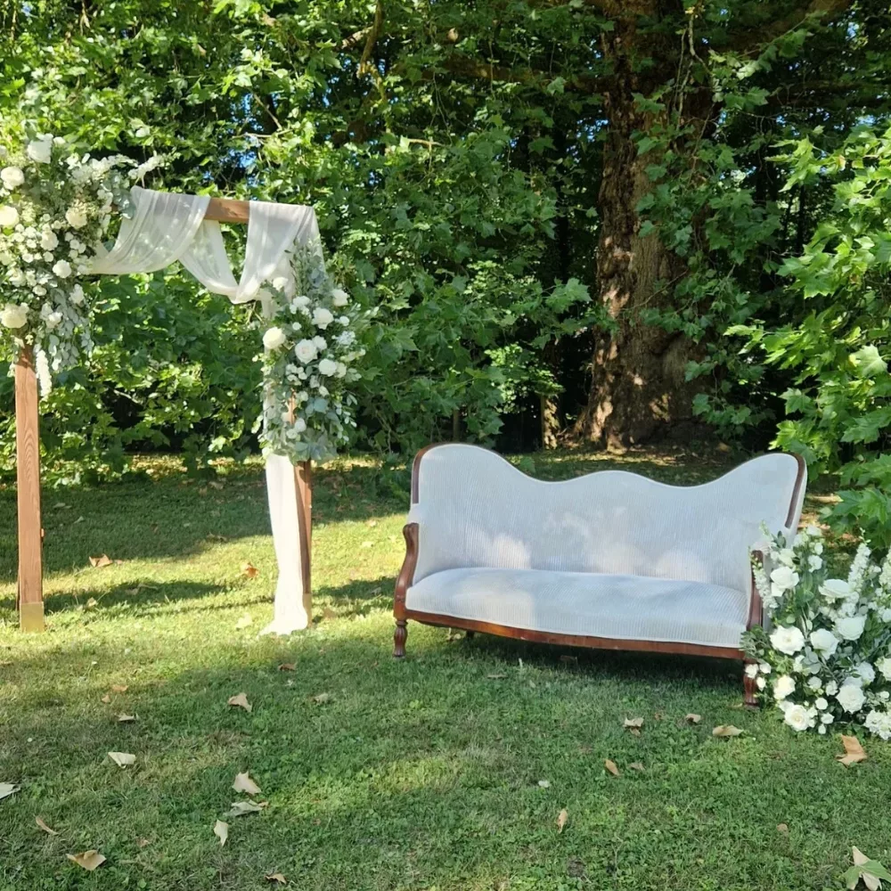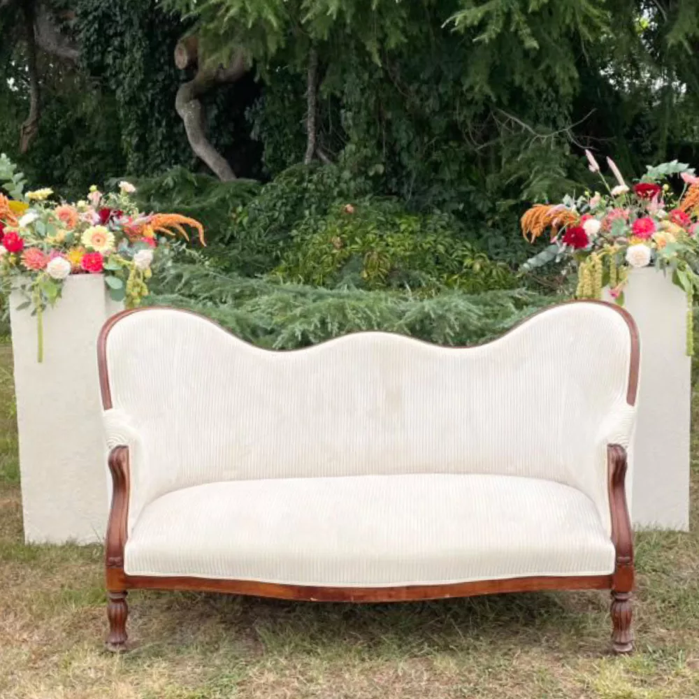 Love Stories Concept Éco Déco vous propose à la location cette sublime banquette Louis Philippe entièrement rénovée, intemporelle et très tendance avec son tissu écru en velours côtelé. Une pièce phare à avoir pour votre événement ! En assise de cérémonie ou tout simplement dans un coin urne-livre d’or, cette banquette fera assurément son petit effet ! Et petit plus : son côté intemporel la rend adaptable à n’importe quel thème d’événement !