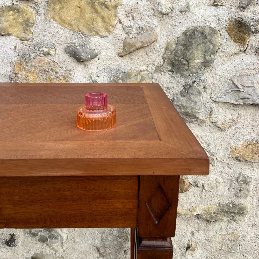 Love Stories Concept Éco Déco vous propose à la location ce bougeoir très original en verre strié rose et orange. Idéal pour vos centres de table ou pour illuminer vos petits espaces de réception. Moderne et discret, il s’adapte vraiment à tous les styles de décoration.