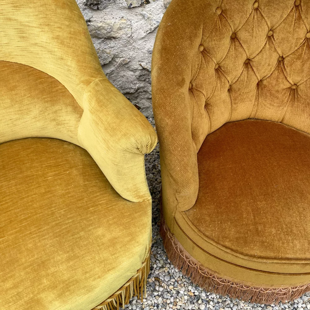 Soyez le premier à laisser votre avis sur “Duo de fauteuils crapaud moutarde et bronze”