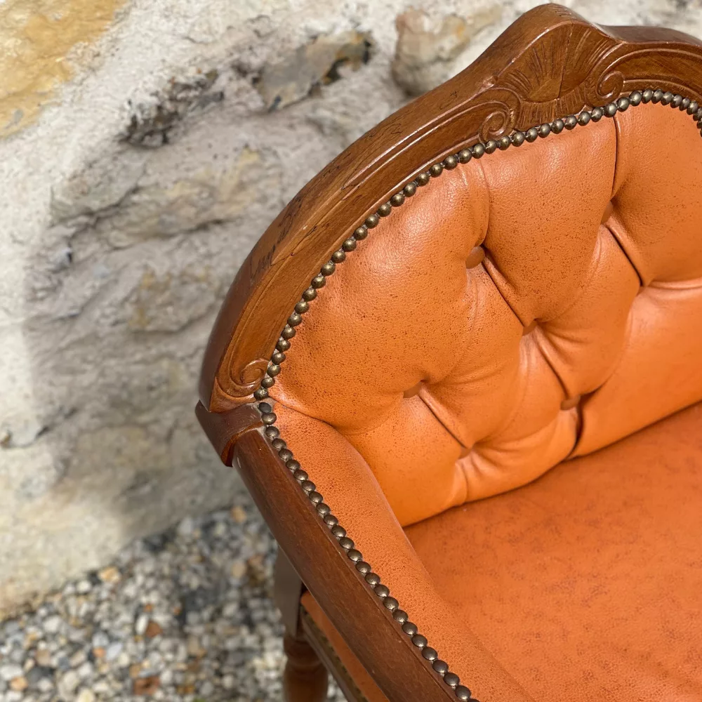 Fauteuil téléphone en skai camel