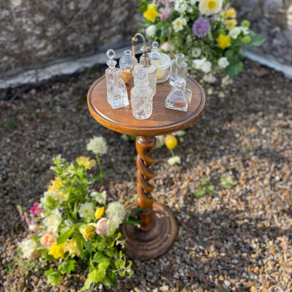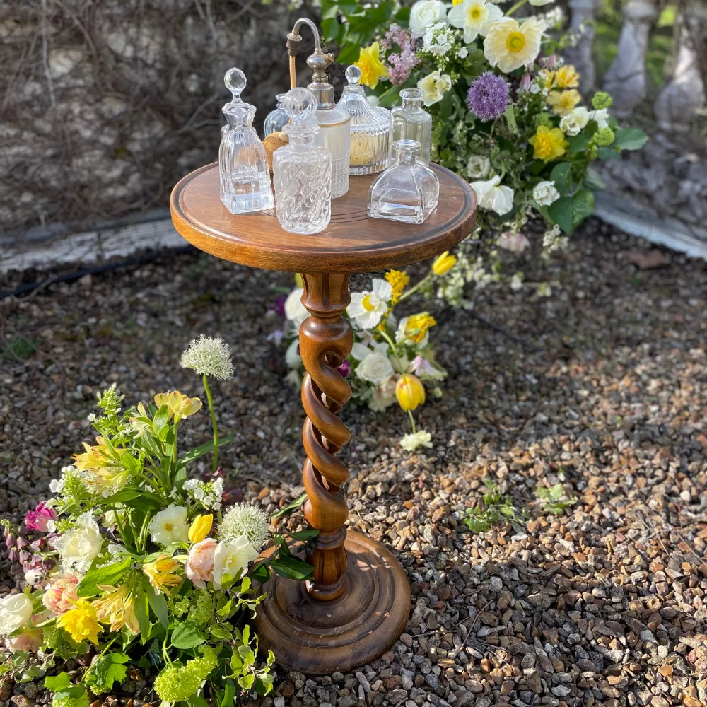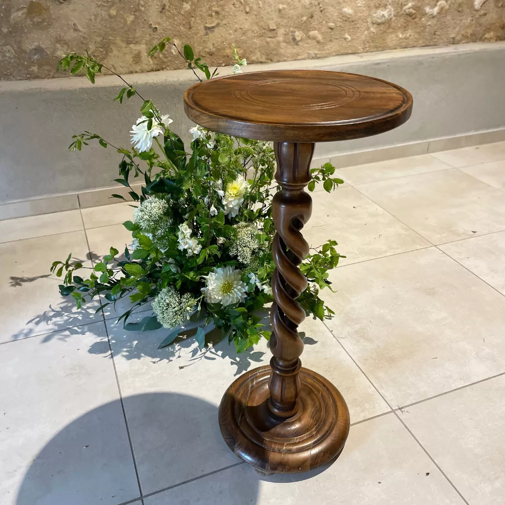 Love Stories Concept Éco Déco vous propose à la location ce joli guéridon vintage en bois, avec son pied torsadé très élégant ! Idéal à associer avec les banquettes et fauteuils vintage disponibles au catalogue Love Stories. Un accessoire indispensable pour parfaire la décoration de vos espaces de réception.