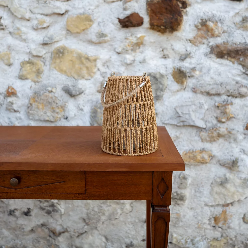 Note : petit pot en verre pour y mettre une bougie chauffe-plat à l’intérieur.