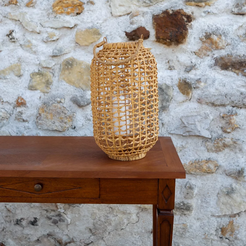 Lanterne cylindrique en raphia tressé