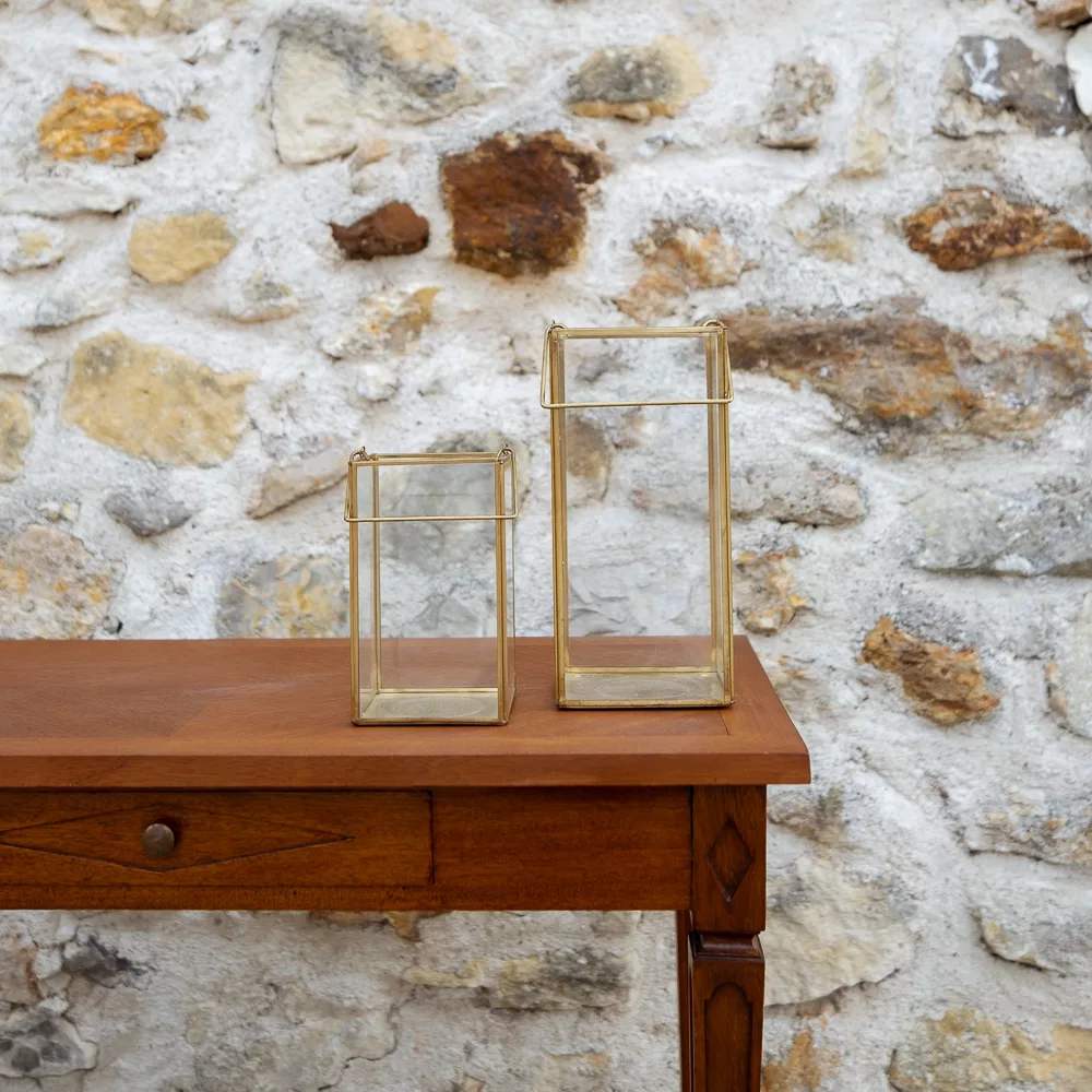 Lanterne rectangulaire en verre et bords or