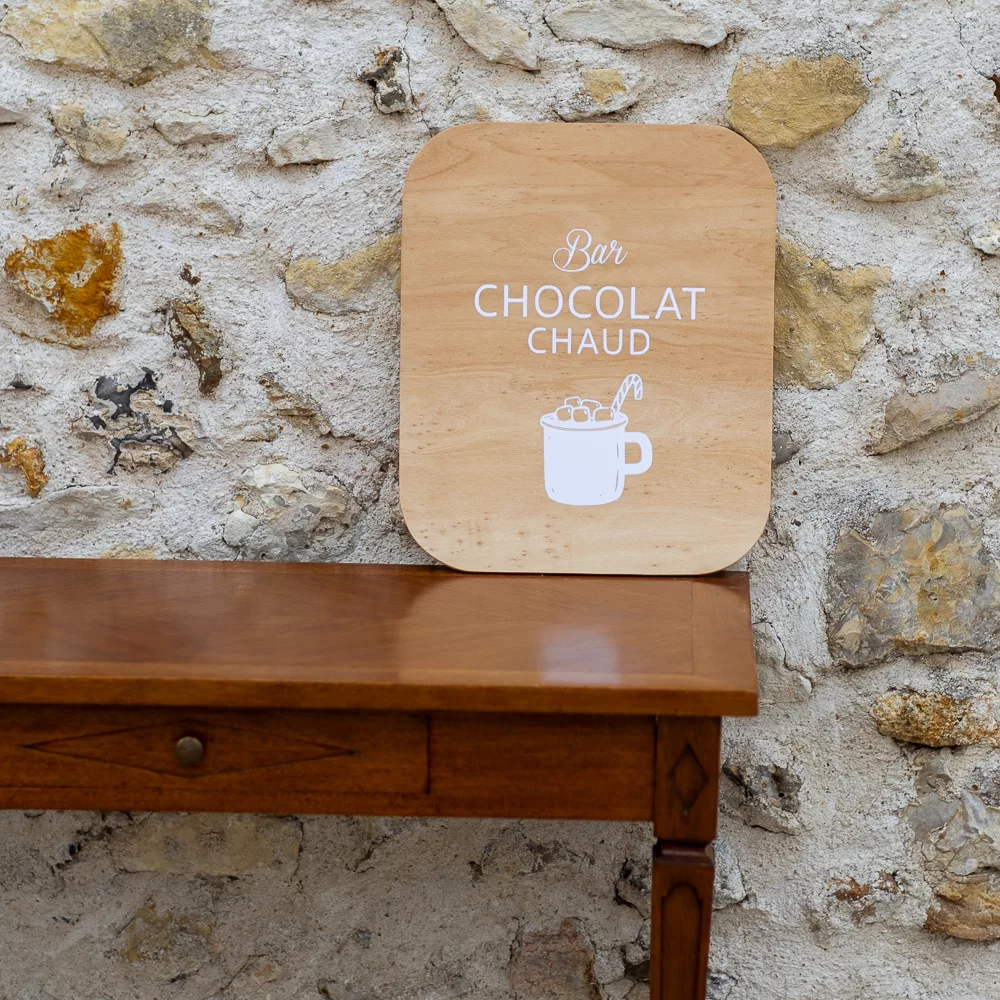 Panneau rectangulaire en bois naturel « Bar à chocolat chaud »